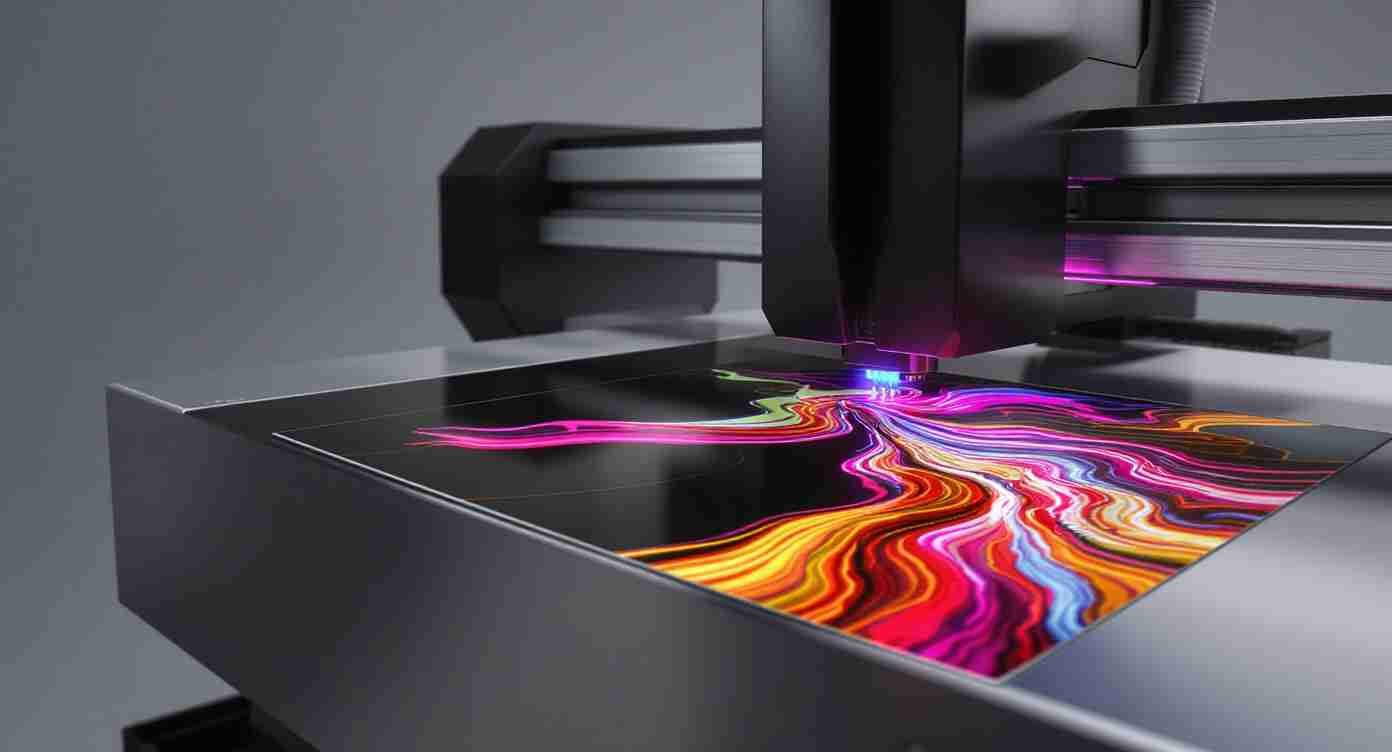 Les encres sont séchées instantanément par rayons UV, assurant une adhérence parfaite et une résistance exceptionnelle aux rayures, à la lumière et aux intempéries. Cette technique est idéale pour la signalétique, la décoration personnalisée et les objets publicitaires haut de gamme.